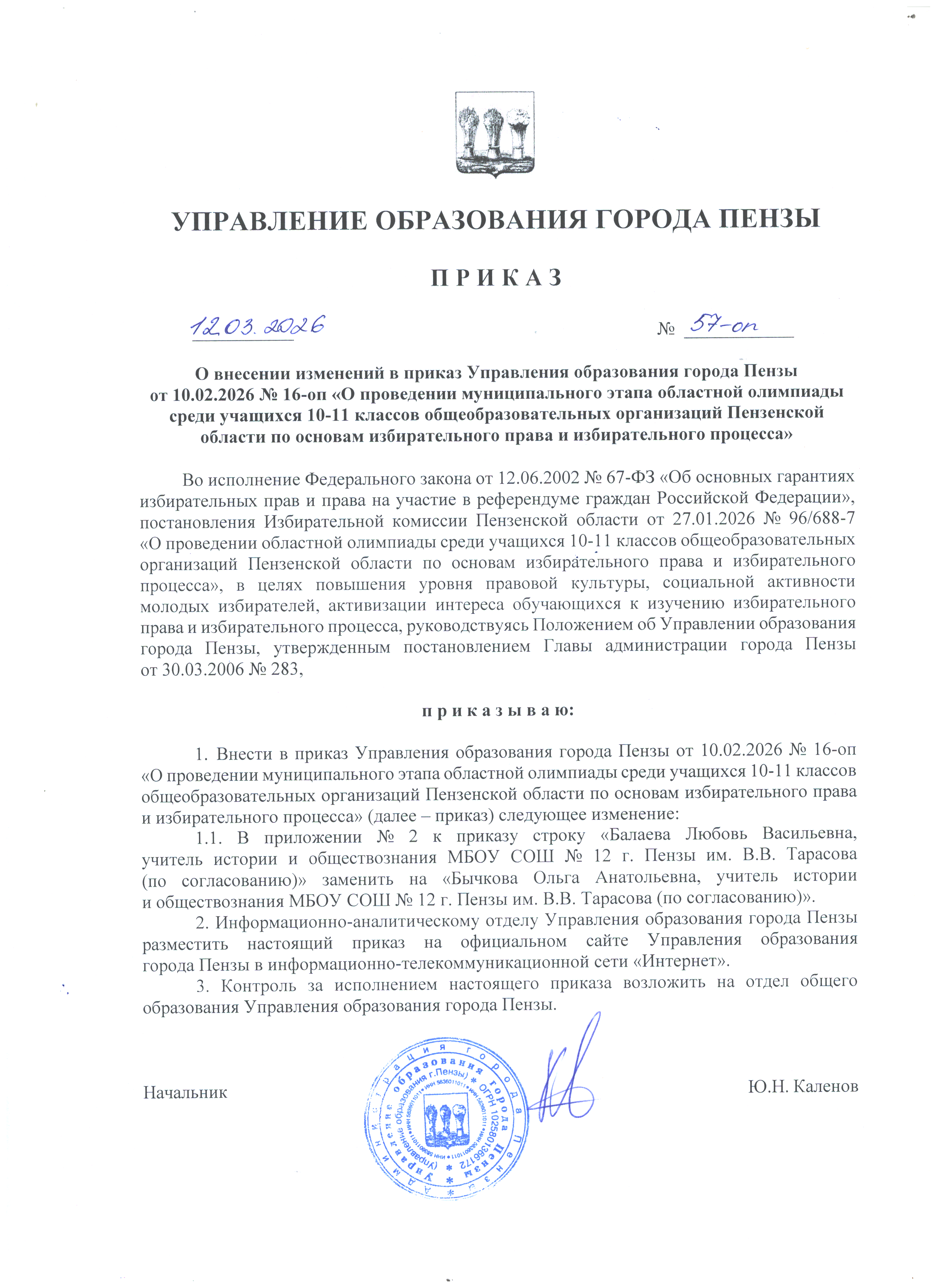 от 12.03.2026 № 57-оп (изменения)
